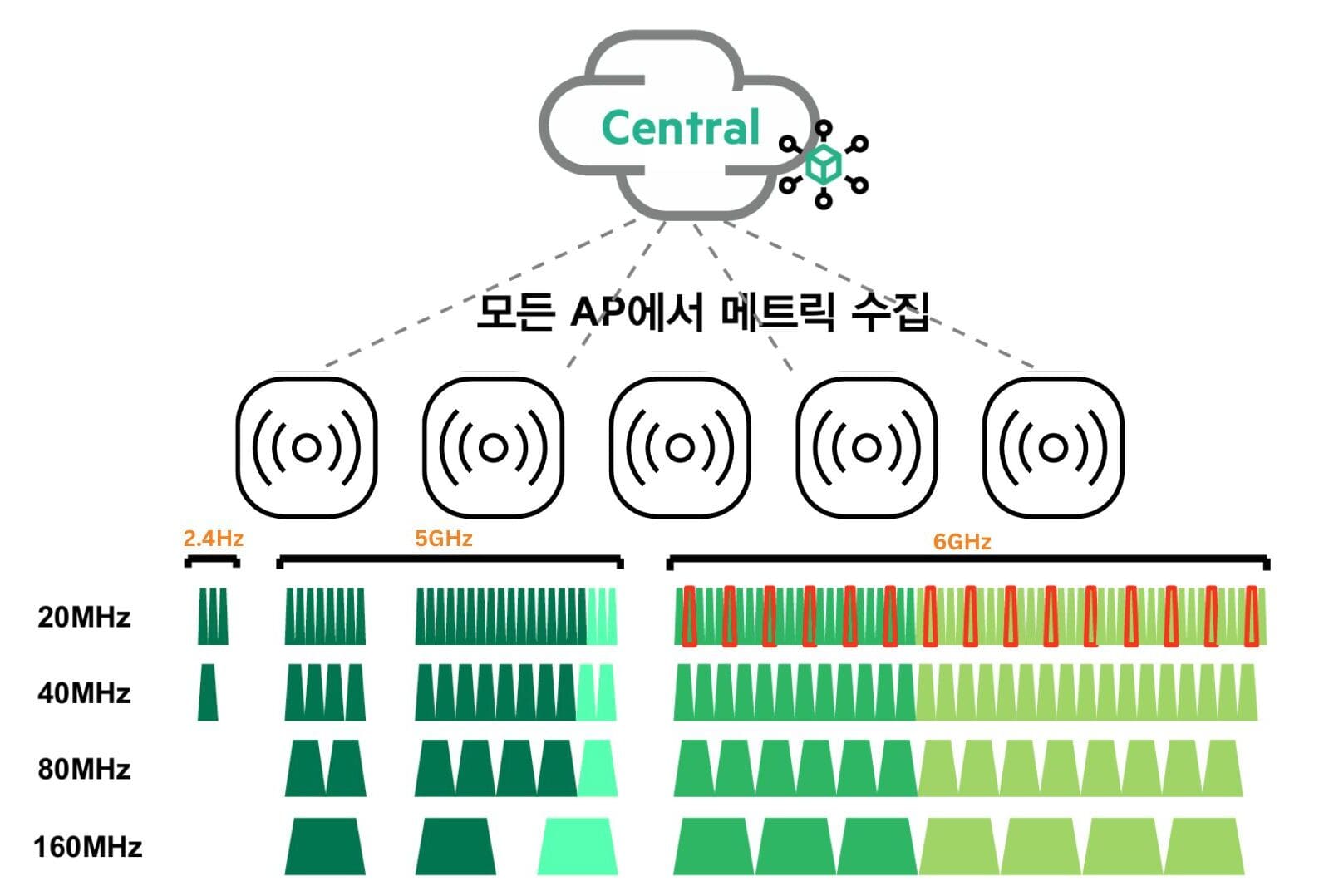RF채널 할당, 채널 폭, 무선 전력 할당을자동화합니다. 변화하는 환경 조건과 시스템 용량에 따라 네트워크를 능동적으로 학습하고 적응합니다. 머신 러닝을 통해 동적 채널할당, 폭 조정, 송신 전력 조정이 가능합니다.